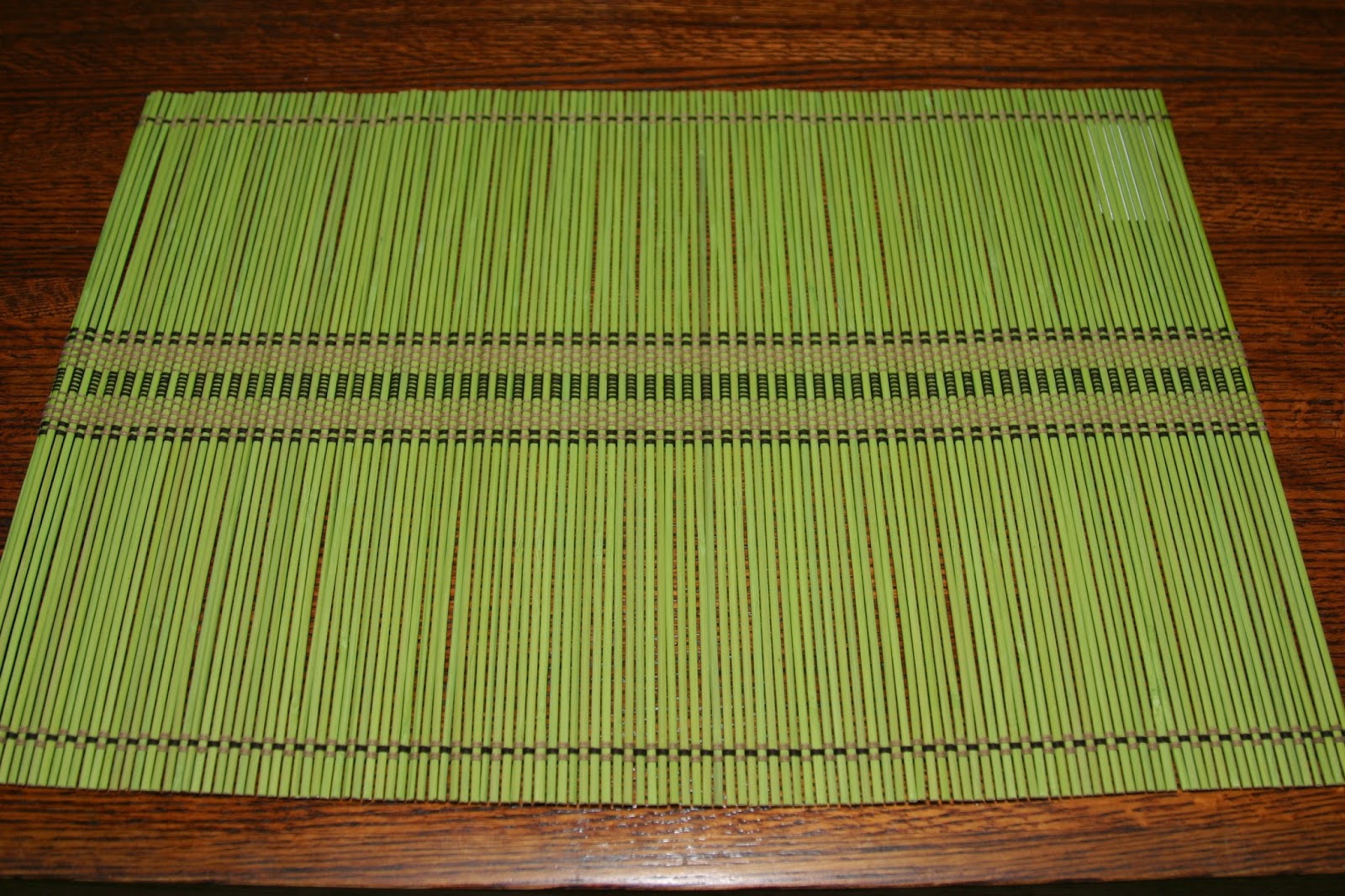 I started with bamboo placemats I found at HomeGoods. I liked the summery green color and the informality of the bamboo for a summer table.