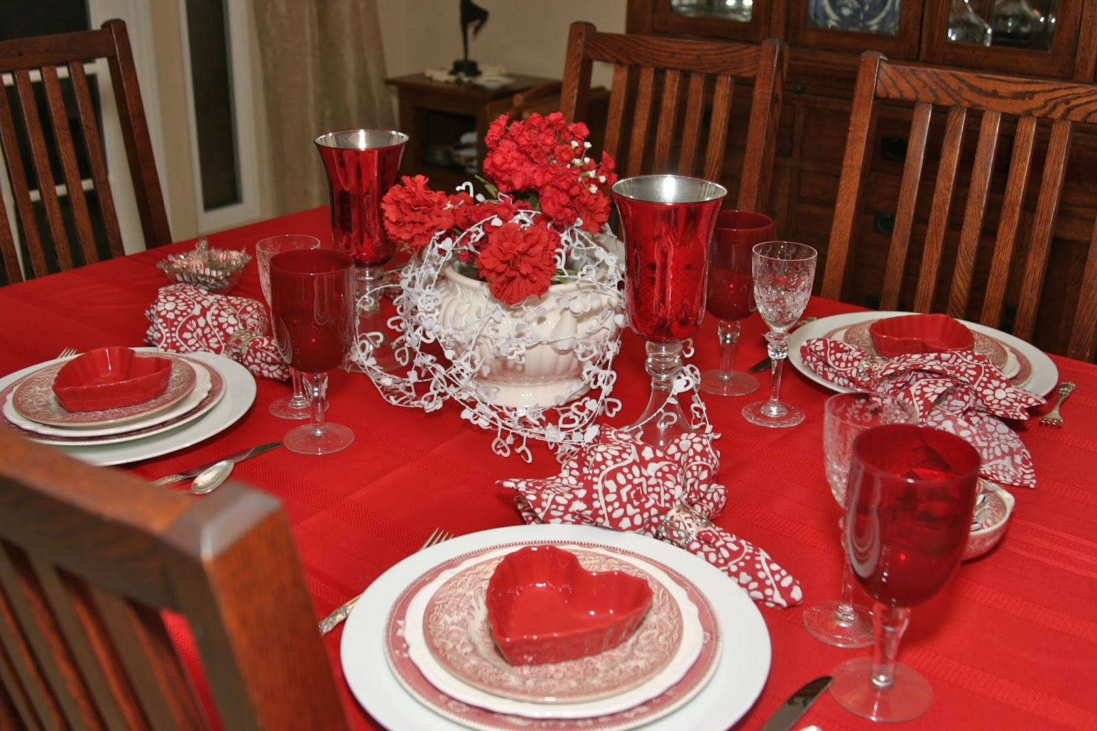 As I stepped away from the table, I felt I had created a Valentine's table that was much more suitable to a Valentine's celebration than the original table I had planned. I guess I'll just always be a traditionalist! Ya gotta have red and hearts for V-Day!